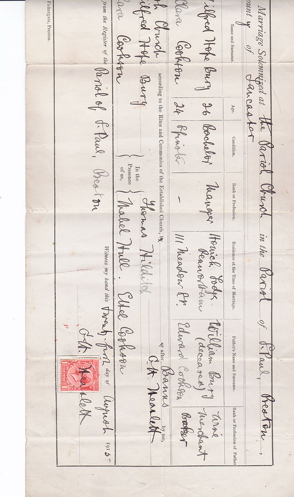 Clara Bury (Cookson) and Wilfred Hope Bury